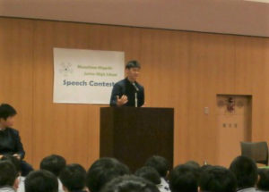 また、3学期は1年間のまとめとして、スピーチコンテストを実施し、学年ごとに選出された、生徒が全校生徒の前で発表します。