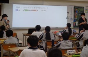 本校では、共通のテーマを複数の教科にまたがって学ぶ教科横断型の授業(コラボ授業)を実施しています。今回は理科と音楽科のコラボ授業で、音について管楽器が鳴る仕組み・音程の調整がどのようにされているのかを考えていきました。理科の授業の中では弦楽器の仕組みを例として学んでいきましたが、その原理と関連づけて考えていくことで普段の授業とつながりを持ったものとしています。また生徒が音楽の授業で使うアルトリコーダーを例にして考えたことも、普段の学びを土台として様々な発見がなされるという体験につながりました。今回の経験が教科を超えた視点を持つことにつながっていくことを期待しています。