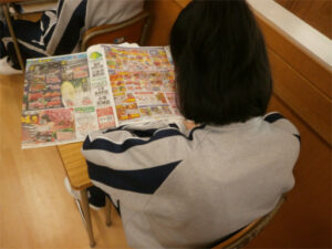 2年生社会科では関東地方の「近郊農業」について学習しています。東京大都市圏のおもな都市で消費される野菜の生産地は、教科書の資料によるとそのほとんどが関東地方の県となっているのですが,実際のところはどうなのか?という疑問から,スーパーマーケットのチラシを使って確認をしました。白菜,長ねぎ,キャベツ…確かに関東近県産!生徒たちは,身近な生活の中にも学びや発見があることに気付けたようです。