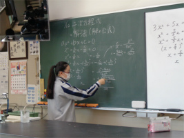 武蔵野東中学校では独自のカリキュラムで授業を進めており、2年生では先週に引き続き2次方程式の学習をしています。