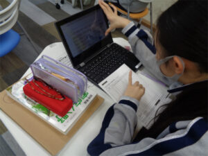 2学期には食材の特徴や扱い方を学び、冬休みの課題としてそれらを生かした調理を行っています。各自でレシピを調べ家庭で実践。家族の方にも食べて頂き、作る喜びも大変さも体感しました。授業では〈食べたい献立1日分~朝食・昼食・夕食・間食〉を考え、カロリーだけではなく、栄養素や塩分量なども計算。食欲旺盛なこの時期の生徒の「食べたい」を満たすメニューはかなりの数で計算するのも一苦労でした。年齢性別に応じた食事摂取基準(推奨量) と比較してみると大きな差があったことにも気づいたようです。今後は「食べたい」だけではなく、パフォーマンスをあげるための食事にするにはどうしたらよいかを学んでいきます。