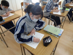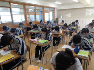 2年生の理科「電気の世界」の単元もいよいよ終わりが近づいてきました。今日は、ここまでのまとめとして、問題を解きました。授業中は理解しているつもりでも、いざ問題に向かってみるとわからないというものもあります。そこをすっきりと解決させ、単元の理解を深めました。
