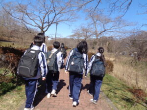1年生は、校外学習に代わる、学年半日イベントを行いました。内容は各班に分かれての武蔵野公園散策とレクリエーション活動です。それぞれの班では、「春を探す」を目的に様々な木々や野鳥の写真を撮ったり、フリスビーを行ったりなど、楽しいひとときを過ごし、交友関係を更に広げるよい機会となりました。