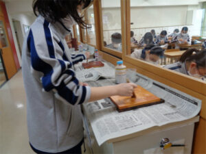卒業が近い3年生が美術の木彫時計の制作を行っていました。それぞれ力作が仕上がってきています。入試を乗り越えて、それぞれがゆとりのある表情で、楽しそうに制作に集中しています。