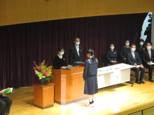 第36回卒業式が盛大に挙行されました。卒業生一人ひとりが事前に録音した3年間の思いや自分の目標が流れる中、卒業証書を受け取る姿は、晴れやかで堂々として、本当に立派なものでした。