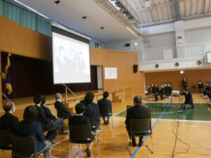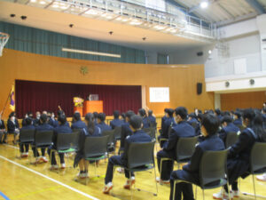 春の暖かな好天の下、新入生100名を迎え第39回入学式が行われました。緊張感の中にも初々しさや期待感が溢れ、新入生の晴れやかな表情が見られました。2・3年生の列席はありませんでしたが、動画メッセージを用意し、後輩の入学を祝福しました。明日から全学年揃っての新しい学校生活が始まります。
