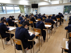 3年生は順調なスタートを切り、いよいよ進学に向けた取り組みが本格的に始まります。その為のオリエンテーションと来週から始まる「特別進学学習」に向けてのテストが行われました。臨む生徒達の真剣なまなざしから、進学に向けた強い意志を感じました。この気持ちを忘れさせずに進めていきます。