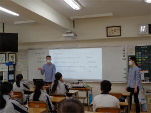 3年生の英語の授業で、ALTのビル先生が、先日亡くなったイギリスのフィリップ殿下と英国王室についての話を英語でしていました。生徒たちにとっても関心のあるテーマだったようで、ビル先生の発するQuestionsにも積極的に答えていました。こういった時事に関する話題も適宜入れながら、生徒はいろいろな種類の英語の情報に触れています。