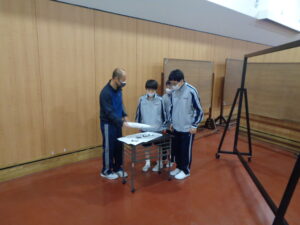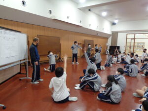 体験・実習の授業は、レクリエーションやスーパーでの買い物学習、木工・調理・被服の作業実習を中心に展開していきます。1回目はレクリエーションということで、ホールにてジェスチャーゲームを行いました。動物、スポーツ、日常生活などから出された「お題」に対して代表生徒が体を使って表現し、みんなで何かを当てるゲームです。表現力を学んだだけでなく、終始楽しい雰囲気で進められ、友だち同士の和を深めることもできました。