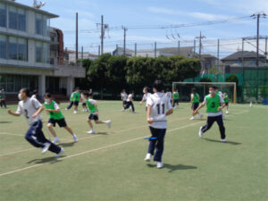中学校に入って2回目の「体験」の授業は、「レクリエーション」でした。クラスの和を高めたり、友達どうしで協力したり、ルールを守って競技をしたり、各自が全力を尽くしつつも最終的な勝ち負けに過度にこだわらずに楽しんだり、といったことを目的としています。「チャレンジ・ザ・ロープ」では、30秒の前回し跳びと二重跳びに挑戦しました。長く跳べた生徒には「すごい!」という皆からの称賛の眼差しが。今後も切磋琢磨しつつ力をつけていけると良いです。全員リレーでは、走者に対して自然に声援が起こっていました。初夏を思わせる気候の中、気持ちよく、そして楽しく体を動かすことができました。