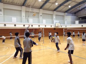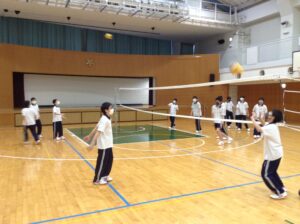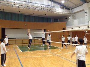2年生の保健体育では、バレーボールを行っています。今年度は球技大会の開催は予定していませんでしたが、生徒は真剣に取り組んでいます。1年時からの積み重ねで上達も著しく、今日の授業では、スパイクのBクイックに挑戦しました。今後行うゲーム練習の中で Aクイック、Bクイック、Cクイックのサインを出しながらスパイクを打ち分けることを目標に取り組んでいます。
