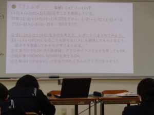 本校の数学では、学習単元の本質につながる題材を提示し、そこからどのようなことを見出せるかを生徒が考え、答えを導いていく学習として、“『?』(なぜ)レポ ”を行っています。