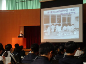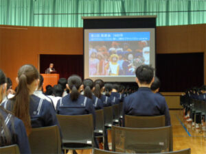 新入生を迎えた4月には、学園の創立について学ぶ機会を設けています。今日の「創立を学ぶ会」では、創立者の北原勝平・キヨ先生のもと、武蔵野東中学校の開校時からの歩みを知り、長く勤められてきた高田先生の話を聞きました。創立者北原勝平・キヨ先生の描いた創立の理念や願っていた生徒像、北原キヨ先生の開校式のスピーチ映像などから、生徒たちにとって、インクルーシブ教育が世界から注目されてきたことやこの学校で学ぶことの意義を改めて実感できる、たいへん有意義な時間となりました。