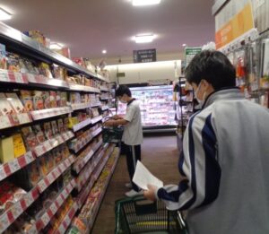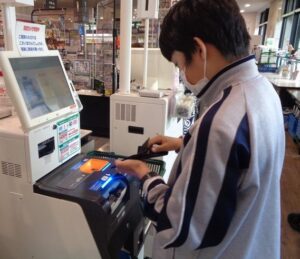 今日の体験学習は、近隣のスーパーへ行き、セルフレジでの支払いを行いました。生活教養の時間を使い、事前に手順を説明して向かいましたが、家庭での買い物の手伝いを通し慣れている生徒もいれば、いざ機械を前にすると「現金」「精算」という言葉の理解が十分でないとどこを押してよいか迷ってしまう生徒も見られ、今後の課題がはっきりしたよい機会になりました。機械のプッシュ手順を再確認し次回に臨みたいと思います。