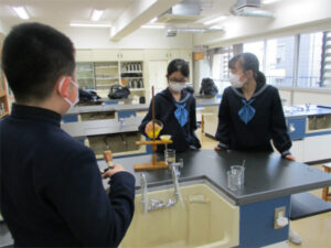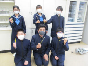 ESSではALTのビル先生をまじえて「誰がうそをついているか」の会話ゲーム、科学研究同好会では「キラキラスティック」の制作をしました。少人数の同好会ならではの充実した時間です。
