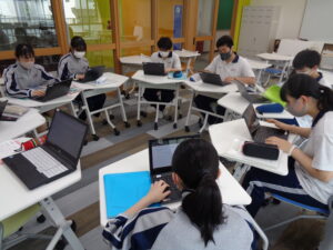 2年生は、個人のテーマが定まり、昨日からアドバイザーの先生とのやり取りがスタートしました。これまでの活動記録を先生と共有し、探究の進め方を整理していきます。同じグループの仲間で進捗状況や問題点を共有することも有意義な時間となりました。大きな「問い」を明らかにする最終目標に向けて、まずはテーマについての情報を集め理解を深めながら、リサーチや実験の方法を模索していきます。