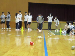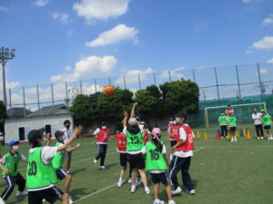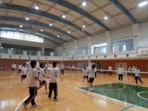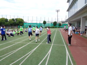 雨も心配されましたが、天気にも恵まれ、2年生がレクリエーションデーを楽しみました。午前中は2年生全員となる102人を8チームに分け、ボッチャ、フリースローゲーム、リレーを行いました。午後はAB組がバレーボール、CDE組はポートボールを行い、クラスでの団結を深めました。各チーム、競技別優勝や総合優勝を目指し、白熱した光景が多く見られました。お互いに応援したり助け合う姿もあり、東中の良さを感じられる1日となりました。