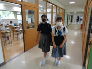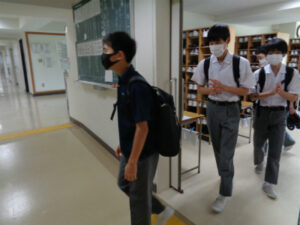 夏制服とともに、紺ポロシャツで登校する生徒が多くみられました。これは登夏制服として着用している白シャツやセーラー服のかわりに、登下校の時に期間限定で着ることができるようになった本校オリジナルのポロシャツです。梅雨の時期、またこれから暑くなる季節には、多くの生徒が活用しています。季節の移り変わりを実感する一日となりました。