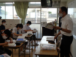 3年生の“特進”(特別進学学習)では、週3回放課後に約10名のグループで入試に向けた学習を進めています。いくつかのグループを覗いてみると、英文法のポイントを先生たちが解説していました。特に生徒が間違えやすい部分の解説では自然と熱がこもり、例文を使って詳細に、理解できるまでポイントを強調している様子がうかがえました。その後じっくり時間をかけて問題演習や解き直しに時間を割くことができるのも、“特進”の良いところです。このようにして友達と切磋琢磨し、楽しみながら学力をつける学習は進んでいます。