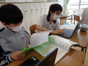 2年生の探究科は「個人探究」を進めています。オリジナルの「問い」を発見するため、各自が多角的なアプローチを行い、テーマを掘り下げています。すでにかなり絞れている生徒もいれば、模索中の生徒もいます。アドバイザーの先生の助言を得ながら自分が本当に向き合っていきたいことを見つけ出していきます。