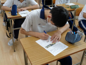観終わった後、生徒からは「人生を一生懸命に生きた人は後に何かを残すのだと思った」「私も人の思いを受けとって、しっかりつないでいきたいです」「人生の終い方を考えるのはあまりよくないと思っていましたが、どう生きていくかを考える事は大切な事だと思いました」といった感想がありました。