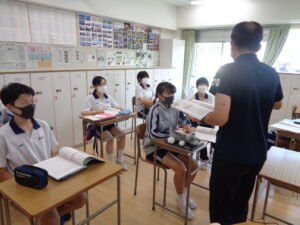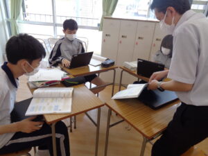 探究科において最終的に明らかにしたい「問い」のことを「リサーチクエスチョン」と呼びます。昨日はテキストを使用し、「リサーチクエスチョン」の立て方をアドバイザーの先生と確認しました。まずは答えがすぐに見つかる小さな問い(言葉の意味や定義を問うもの、比較をして明らかにしていくもの、原因を考えるものなど)を立て、その答えを探しながら「リサーチクエスチョン」を導いていきます。自分のテーマを多面的にとらえ、思考を整理しながら探究を深めていってほしいです。