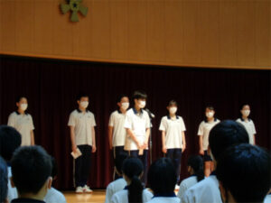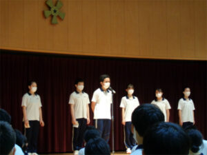 友愛会(生徒会)の委員長たちは毎週の全校朝礼で、それぞれの委員会の活動内容やこれから行おうとしていることを話しています。生徒全員に直接かかわることなので、その目的などをしっかり伝えることの重要性を理解し、わかりやすく話すことも大切な役割です。卒業生に聞くと、このように人前で話した経験が自信をつけさせてくれたということをよく話しています。生徒会だけでなく、クラス活動や授業などにおいてもこのような機会を数多く設けています。