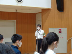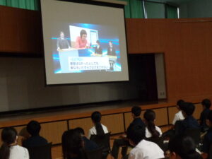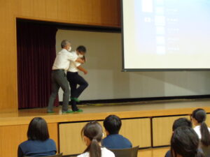小金井警察署少年係の方をお招きし、「防犯安全教室」を行いました。インターネットでの情報発信に関わる犯罪の事例を紹介するDVDを見て、ネットやスマートフォン利用のリスクについて学びました。安易で軽率な投稿が、他人に迷惑をかけるだけでなく、自分をも傷つけてしまうことがよく理解できたと思います。また、不審者対応に関しては、それらしき存在があれば、まず自らが先に気づくことが大切であることや背後から抱きつかれたときの対処法も実演で教えていただき、有意義な時間となりました。