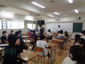 3月に卒業した第36期生の「ホームカミングデー」でした。はじめに、旧クラスごとに集合してお互いの近況報告を行いました。東中を卒業してから約4ヶ月。感染症対策をしつつの学校生活が続きますが、新しい環境の中でそれぞれ学習や部活動を頑張っている様子が窺えました。その後、アミティエホールに移動し、旧3年A~E組までが一緒になって「豪華景品の当たるビンゴ大会‼」を楽しみました。懐かしい友達や先生との再会を喜び、今抱えている悩みや取り組んでいることを飾らず率直に話し、互いに励まし合う有意義な時間を過ごすことができました。元気になって笑顔で帰っていく姿が印象的でした。また、中学校に成長した姿を見せに来てください。卒業生の皆さんの更なる活躍を期待しています。