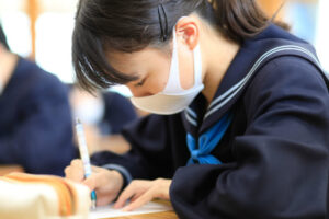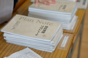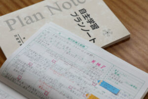 自分で伸びる力をつけるのが、武蔵野東中学校です。自立した学習を支えるツールが「自主学習プランノート」です。生徒はこれを使って1週間分の家庭学習計画を立てます。例えば水曜日に英語の単語テストがあることがわかっていれば、月曜日と火曜日に単語テストの範囲と学習時間を書き入れます。また、授業の復習や問題集のページなども記入していきます。プランが立ったら実行です。その日の終わりに自己評価を行い、できたら〇、完全でなければ△、できなければ✕などを記入します。✕がついたら、その分を別の日に移動します。そして学習を振り返ってのコメントを書きます。これを毎日行うことで自立した学習習慣が身についていきます。「自主学習プランノート」は毎朝クラスで提出します。担任の先生はアドバイスを書き、帰りのHRで返却します。担任の先生のコメントを見ることで、モチベーションにもつながっています。次回は「自主学習ノート」について紹介します。