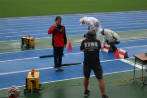 8/13.14日 第84回東京陸上競技選手権大会が駒沢陸上競技場で行われました、この大会は東京都各世代のチャンピオンを決める大会で国体の選考も兼ねており、日本を代表する選手も参加する大会となっていました。本校からは標準記録を突破した4名が挑戦し、4名共に入賞をしました。その中で3年村松さんは2種目優勝となり、会場内で優勝インタビューを受けていました。