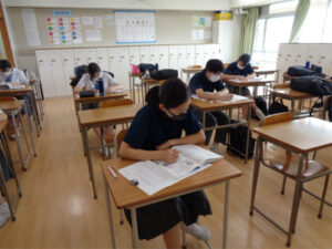 講習を通して、生徒は様々な入試問題、小テスト、各教科の授業にとても熱心に取り組みました。時に友達と切磋琢磨し、目の前の課題と向き合い、学びを深めた17日間でした。また家庭においても、この夏こそプランノートを活用し、学習量・時間ともに充実させるよう、アドバイスをしてきました。その結果、自分で学習を継続する力も、確実に伸びたと思います。2学期はこの夏の経験を土台に、さらに力を高めていきます。