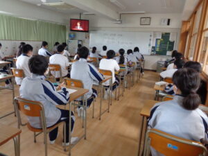 本日の生命科では、東京オリンピックで銅メダルを獲得した村上茉愛さんが本校で全校生徒に話してくれた『夢・目標・計画』を視聴しました。