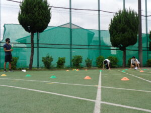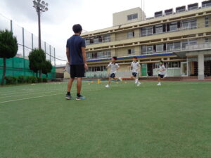 スポーツ大会当日に行う陸上種目の決勝に向け、感染対策に気を付けながら予選を行いました。種目は50m走、ハンドボール投げ、持久走、4×100mリレーの4つです。今年は合同体育ではなく、クラス体育での予選にしています。決勝進出を目指してどの生徒も全力を尽くし、多くの生徒が自己ベストを更新していました。応援している生徒からは拍手が湧く様子多くが見られ、チームの枠を超え、クラスの団結も見られる予選会でした。