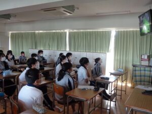 本日は、家族のためにゴミ山で働く、フィリピンの14歳の少女マニカのTVドキュメントを視聴しました。これまでにユニセフや世界の貧困・紛争、それらへの支援について学習してきましたが、今回は同年齢の少女の置かれた境遇に生徒たちも大変衝撃を受けたようです。学校に通いたくても通えない、一日中働いても450円のかせぎ、そして食事は3日に一度というマニカの境遇。それらと私たち日本人の生活を比較し、あたりまえのことに対する感謝の気持ちを新たにした生徒が多数いました。次回は国際理解学習のまとめとして、では私たち(個人)に出来ることは何なのか、について考えさせていきたいと思います。
