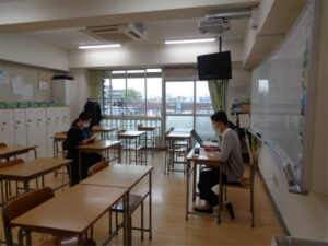 希望者を対象に、英検2次試験対策講座をマンツーマンで行いました。入室から退出までの流れを確認した後、通して試験を行い、フィードバックを受けます。発音や文法ももちろん評価の対象ですが伝えようという意欲がとても大切です。緊張する様子もありましたが、最後には自信を持つことができ、今後に向けての課題が明確になりました。