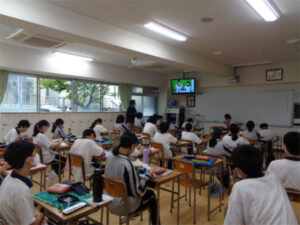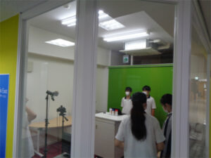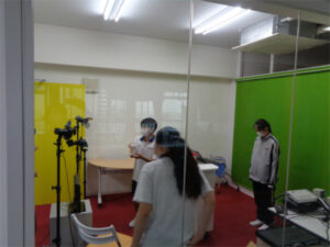 学園祭記念グッズ企画担当の1年生を中心に、記念グッズについて校内テレビ放送で全校に発信しました。準備の段階からとても緊張していた1年生ですが、わかりやすく記念グッズの紹介をすることができました!