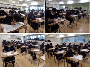 日本漢字能力検定協会主催の漢字検定(第2回)を140名の生徒が参加して実施しました。本校では国語のカリキュラムの中に、1学年で4級、2学年で3級、3学年で準2級の取得を目標として指導しています。本日も生徒たちは合格を目指して真剣に取り組んでいました。結果を期待して待ちたいと思います。
