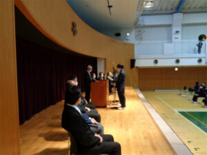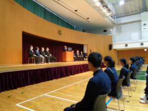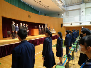 学園の創立57周年をお祝いする記念式典が行われました。生徒によるお祝いの言葉に続いて、理事長先生の式辞がありました。学園の創立が前回の東京オリンピックと同じ1964年であることから、そのころからの日本の成長と学園の発展を絡めてのお話を聞き、中学生たちも学園が刻んできた歴史について理解を深めることができました。