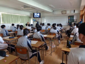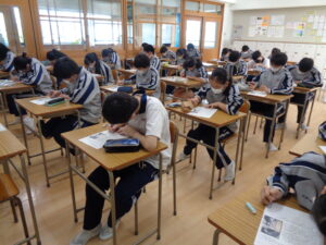 2学年生命科では命の尊厳というテーマで学習しています。第3回となる今回は、中村久子さんという方を追った動画を視聴しました。病気のために3歳で両手を失い、数々の苦難を乗り越えながら生き抜いた中村さんの生涯から、生徒は生きることの意味や生命の尊さを考えさせられた様子でした。