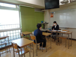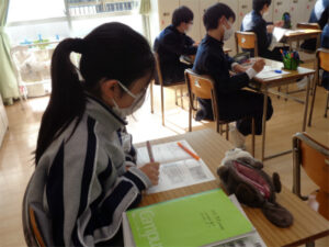 2学期の総合テスト(期末テスト)を目前に控えた土曜日の学習講座がありました。授業では、応用的な学びをしている教科、最終的な確認をしている教科などそれぞれでしたが、生徒たちは目標をもって真剣に取り組んでいました。また3年生は個別学習を進めるのと並行して、進学に向けての担任との面談を行っていました。