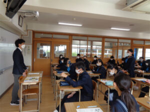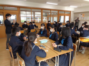 これまで<命の尊厳>をテーマに井村和清さん、中村久子さんのドキュメントを視聴して考えを深めてきましたが、ここで改めて<命の尊厳>とはどういう意味なのか考える時間を持ちました。生徒たちは3つの質問(①命(=生きること)は素晴らしいと感じる時、②命(=生きること)は辛いと感じる時、③いのちはなぜ厳かで尊いのか)に向き合い、自分の考えをまとめ、クラスメイトの発表を聞きました。更に、星野富弘さんの詩画集から一節を参照し、星野さんはなぜ「命より大切なもの」があると考えたのかを考えてみました。最後の問いでは数人のグループで意見を出し合い「私が考えるいのちより大切なもの」をまとめてみました。周囲の考えを聞くことで、自分では言葉にできなかった思いに気付くとともに、友達の考えに発見もあったようです。