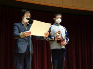 選考対象は3年生でしたが、各個人の総合評価が5段階に分かれている中、男子は上位2段階に80.8%、女子は90.7%が入るなど、3年間の継続した取り組みが評価されたようで、身体が大きく成長するこの時期にしっかりと体力をつけられたことは生徒にとって大きな自信へと繋がったようです。表彰式後は、パラリンピック日本代表の瀬立モニカさんの記念講演があり、全国から集まった生徒へ、東京パラリンピックの様子や笑顔の大切さなどのメッセージを話されていました。