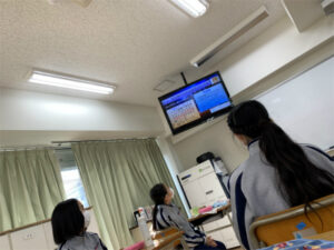 PR委員会がスタジオから毎週水曜日に放映している「みんなの掲示板」が軌道に乗っています。「学校生活を活性化させていくために部活や委員会の情報を全校で共有できる掲示板をつくる」をコンセプトに運営してきましたが、アクティベーション委員会やスポーツ推進委員会、文化推進委員会、SDGsプロジェクトなどが注目のニュースや季節に合わせたことわざなどの発信したい情報を持ち寄る等、内容もかなり充実してきました。盛りだくさんの内容なので朝だけでなく給食中も放映しては、といったアイデアも上がり、運営を開始してから改良が重ねられてきました。まさにその名の通りの「みんなの掲示板」になり、委員も達成感を得ているようです。