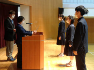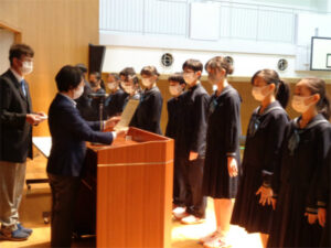 2学期の終業式が体育館にて行われました。校長先生からは、大きな行事を友愛会の生徒が中心となってみんなの力で作り上げたことで、実りのある2学期となったというお話がありました。また、スピーチコンテストで入賞した3名の生徒や探究科の校内審査で入選を果たした生徒、さらに英検や漢検の合格者やWIT(英語の校内検定)の最高位合格者の表彰を行い、2学期の締めくくりとしました。