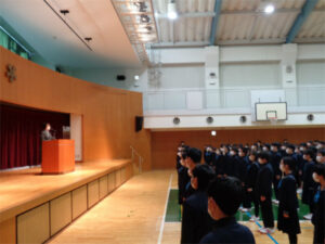 3学期がスタートしました。始業式では校長先生から、新型コロナウィルスの感染予防は一人ひとりが気を付けていくことが大切であること、また、3年生に対しては高校受験に向けて準備を進めていくことなどの話がありました。引き続き感染予防に気を付けつつ、武蔵野東中学校の新学期が始まります。