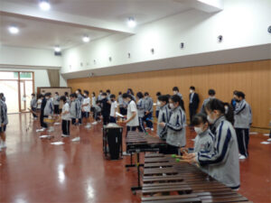2月に行われる発表会では、音楽や武道、ダンスの発表が行われます。今回は、音楽の部の様子をお伝えします。コロナ禍での音楽発表ということで、打楽器を中心にさまざまな工夫を凝らして練習を行っていました。本番では、個々の力が集結して素晴らしいハーモニーを奏でることを期待します。