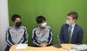 ALTのビル先生に英語でインタビューする企画を、アクティベーション委員会で行いました。事前にスタジオイーストで撮影し編集したものを、昼食時に各教室のテレビで放映しています。趣味や好きな言葉、学生時代のニックネーム、日本に来た理由などの質問から始まり、後半では「あなたにとって家族とは?」「無人島に1つだけ持っていくなら何?」といったユニークな質問まで幅広く尋ねていました。異文化理解やさらなる英語学習の動機付けとなったことと思います。