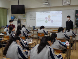 1年生の探究科では、探究テーマを決めるためのガイダンスが行われています。今回の授業内容は、自分の興味・関心が学術分野とどのように関連しているかを知ること。自分の進路も考慮しながら、その学術分野がどのようなことを行うのかを調べました。日常の生活では意識することがなかった学術分野について知ることで、新しい視点が得られ、考え方や視野を広げるよい機会となりました。