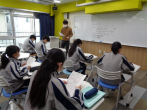 本校では、会長・副会長によって組織される総務委員会の選挙が2月に行われます。この日は会長・副会長に立候補した生徒たちが集合し、今後の予定や選挙の取り決めなどについて説明を聞きました。今後は、先日発足した生徒による選挙管理委員会が中心となって、選挙ポスターやPR動画の作製、意見交換会の準備などを進めていきます。
